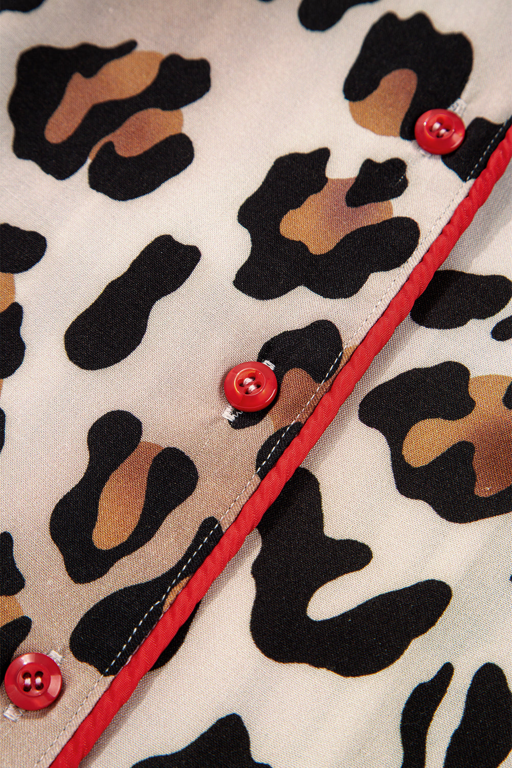 ✅ Chic leopard print with contrast black & white stripes + red piping for a high-fashion twist