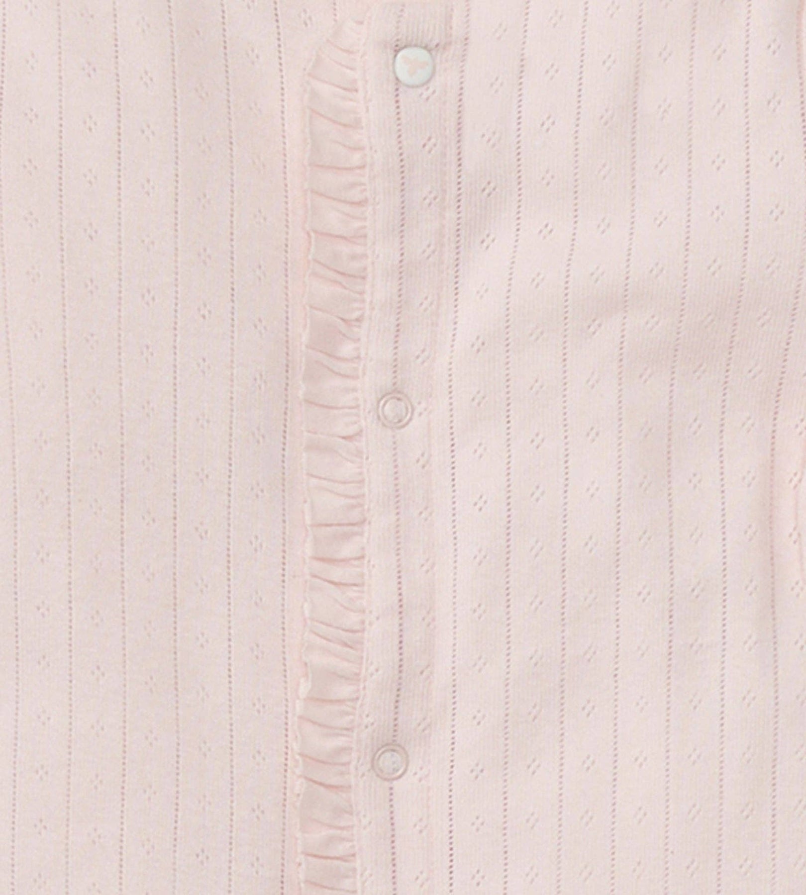 This 3-piece set includes a footed jumpsuit, rounded drool bib, and knot top hat, making it the perfect daily outfit! * Super soft pointelle organic cotton * Footed jumpsuit with ruffle detail * Rounded drool bib * Knot top hat * Made in India * Style # LY31866