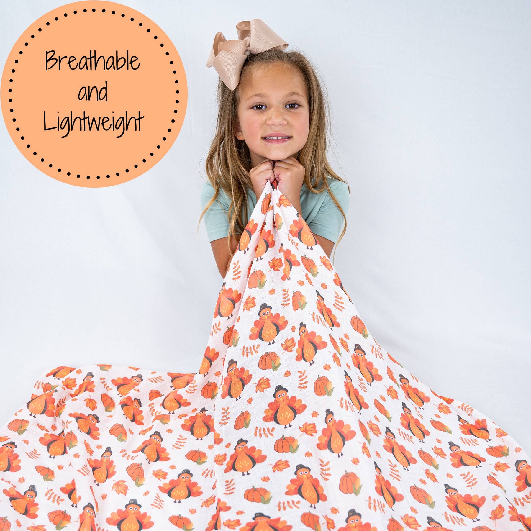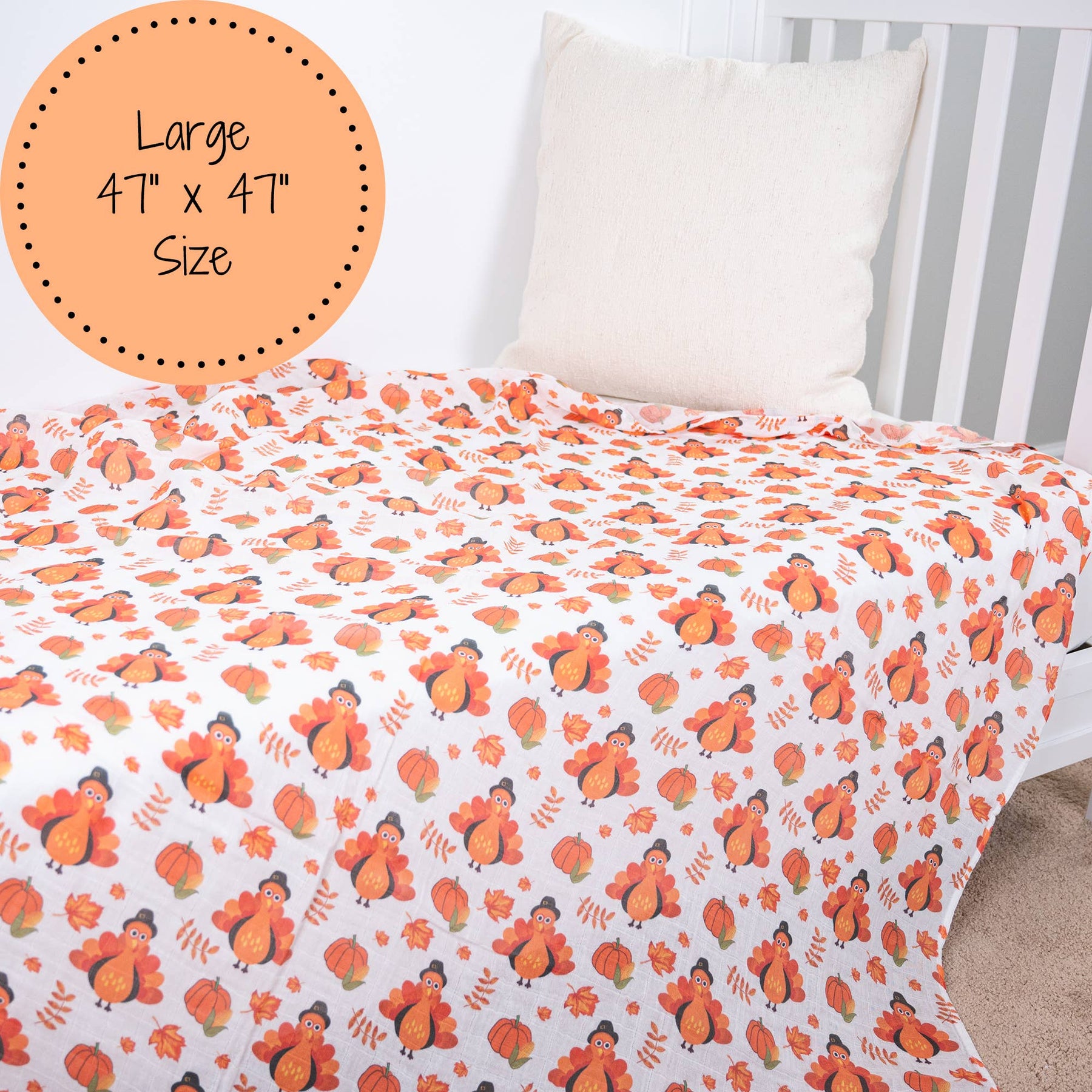 Little Gobbler Turkey Fall Holiday Baby Muslin Blanket