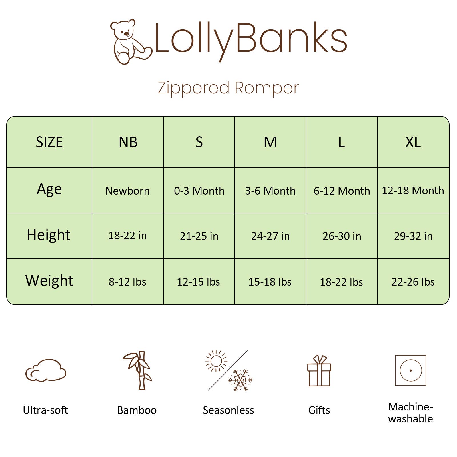 Soft & Breathable Fabric – Keep your baby cozy all day, free from harmful substances, and gentle on sensitive skin. Stretchy Comfort – Stretchy fabric ensures easy movement and long-lasting fit as your baby grows. All-Season Wear – This breathable onesie is perfect for every season. Its exclusive LollyBanks prints make it an ideal baby shower or special occasion gift. Convertible Sleeves & Legs – Fold-over cuffs and foot openings offer versatility, keeping hands warm or allowing free movement. Convenient Diaper Changes – A premium 2-way Y.K.K. zipper allows quick, hassle-free diaper changes, ensuring comfort and saving time.