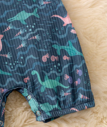 Make a big splash this summer with our Under the Sea Creatures Infant Boy's 1 Piece Sleeveless Romper! Featuring a blue textured bodysuit adorned with a variety of sea creatures, this playful romper is the perfect addition to your little one's wardrobe.