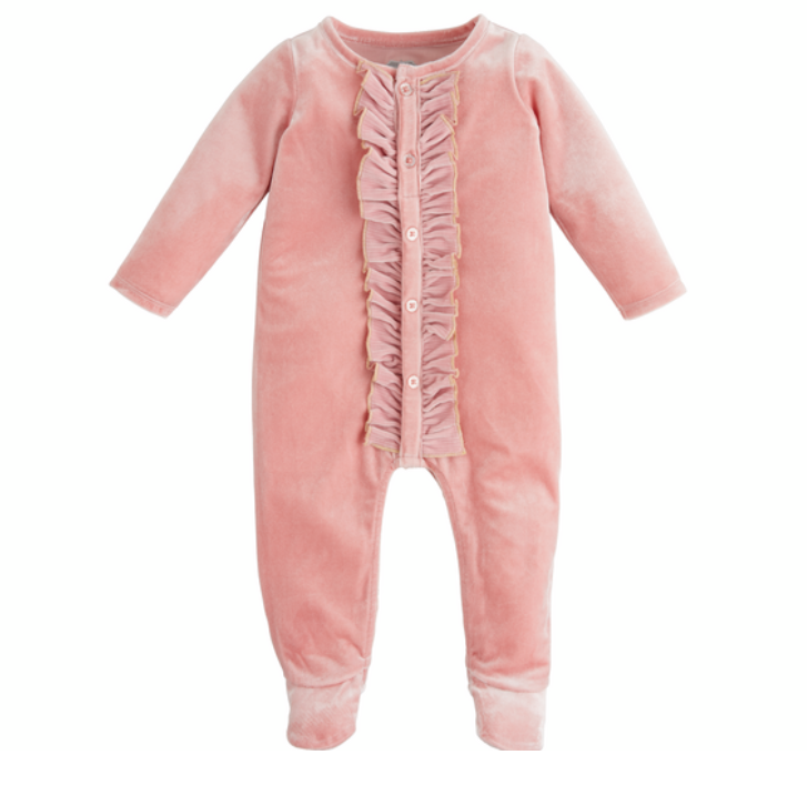 Mud Pie Pink Velour Ruffle Footie Sleeper