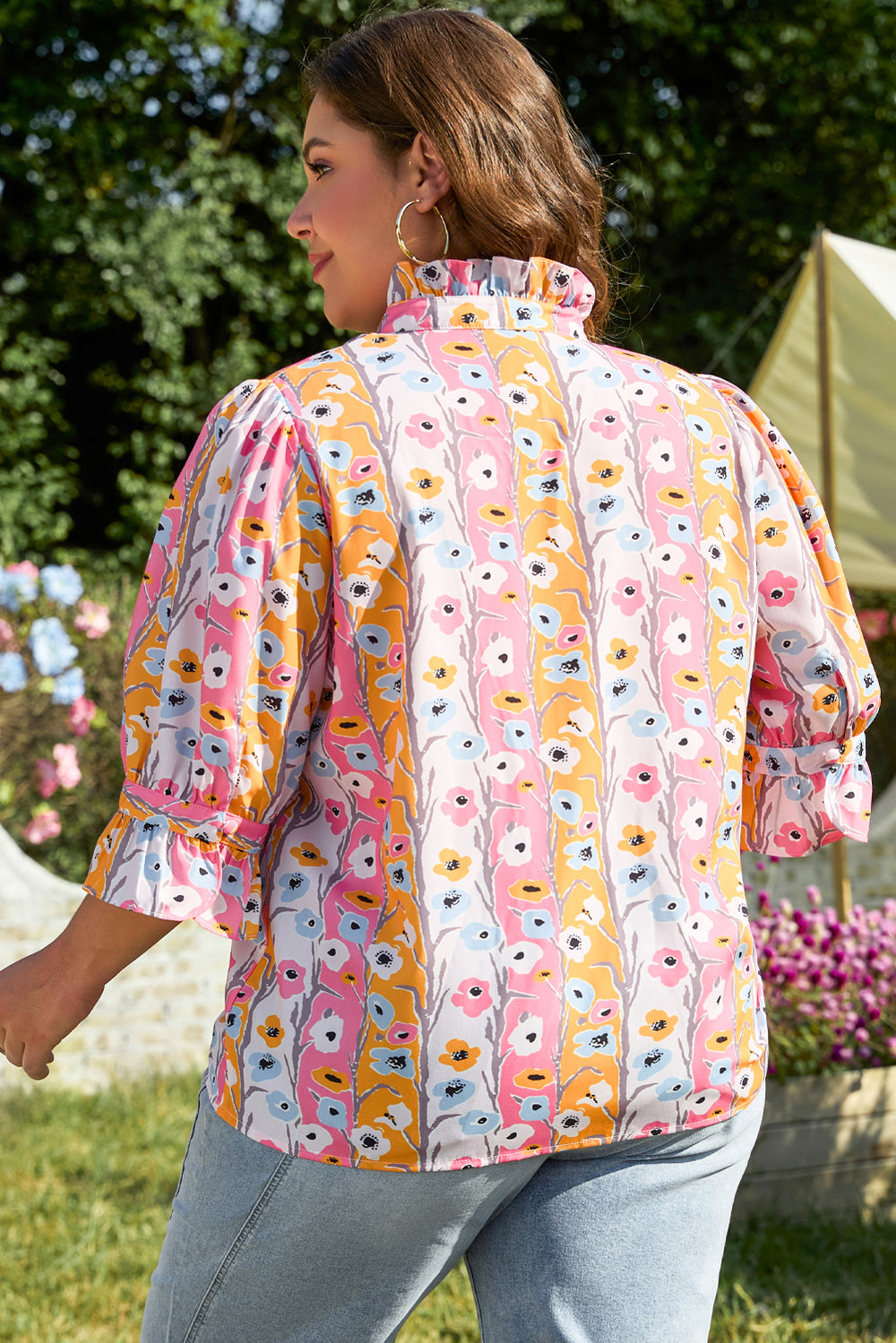 PLUS SIZE✨Petal Pop Ruffle-Neck Blouse 🌸