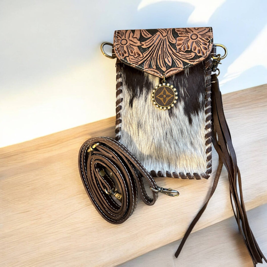 LV Logo Medallion brown Tooled Cowhide Phone Crossbody