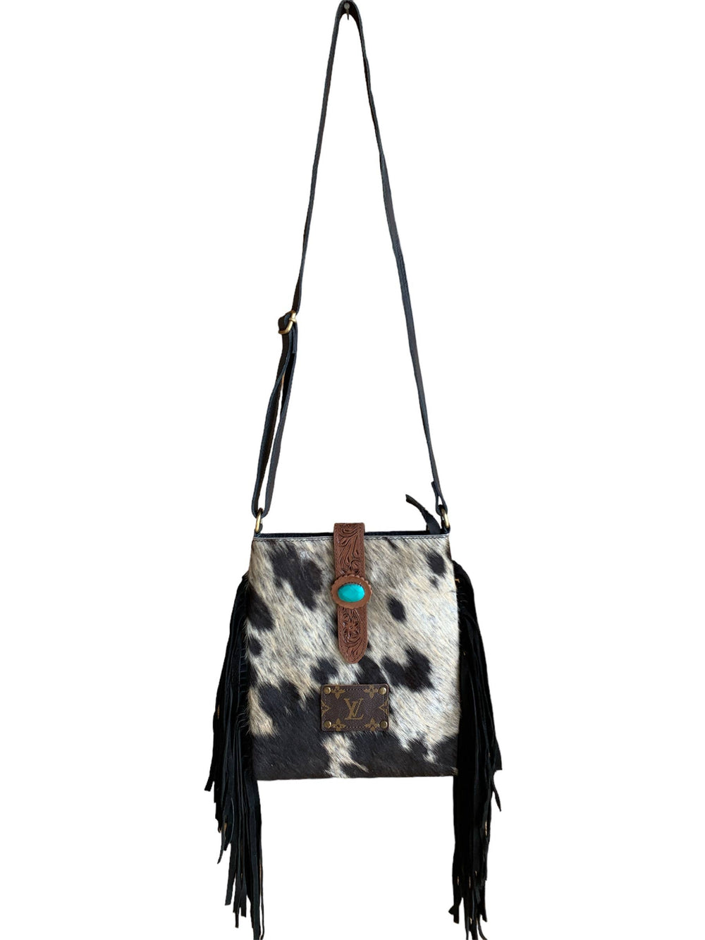 LV Logo Cowhide Medium Fringe Crossbody Bag