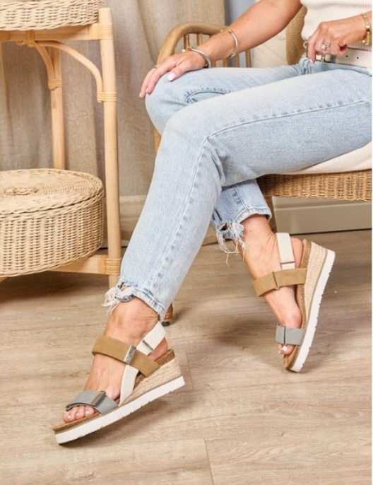 Corkys Rumor Has It Platform Sandal-Tan & Natural Stripe