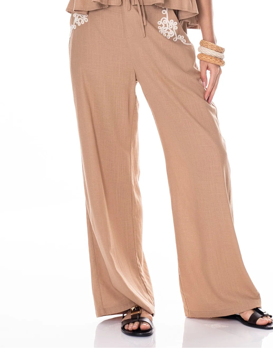 Galita Linen Blend Trousers β Zipper and Button Fly, Relaxed Wide Leg