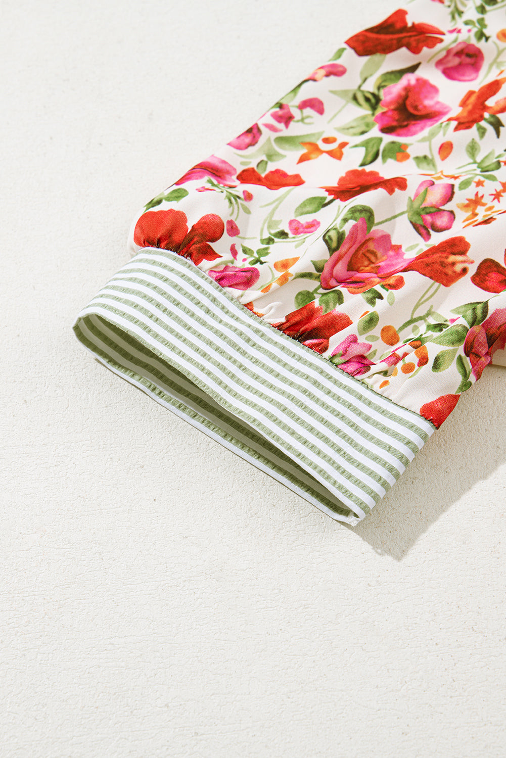 • 🌺 Watercolor florals on a creamy ground with contrast mint stripes