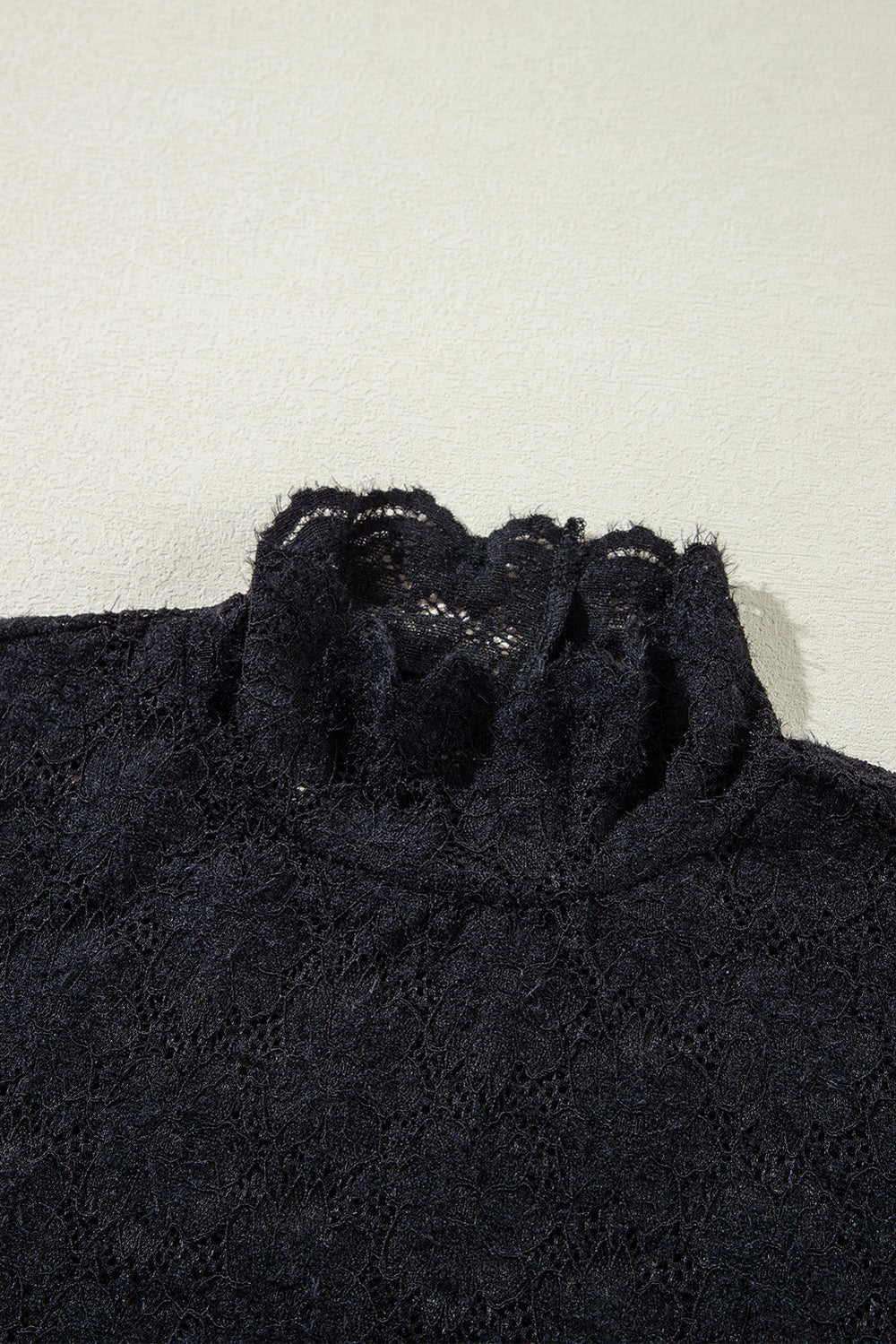 Black Flower Lace See Through Mock Neck Long Sleeve Top