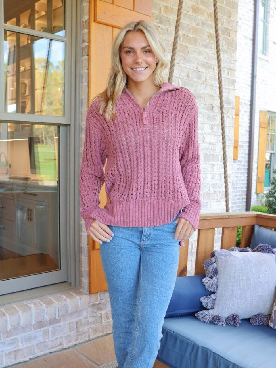 Simply Southern So Soft Quarter Zip Sweater in Plum