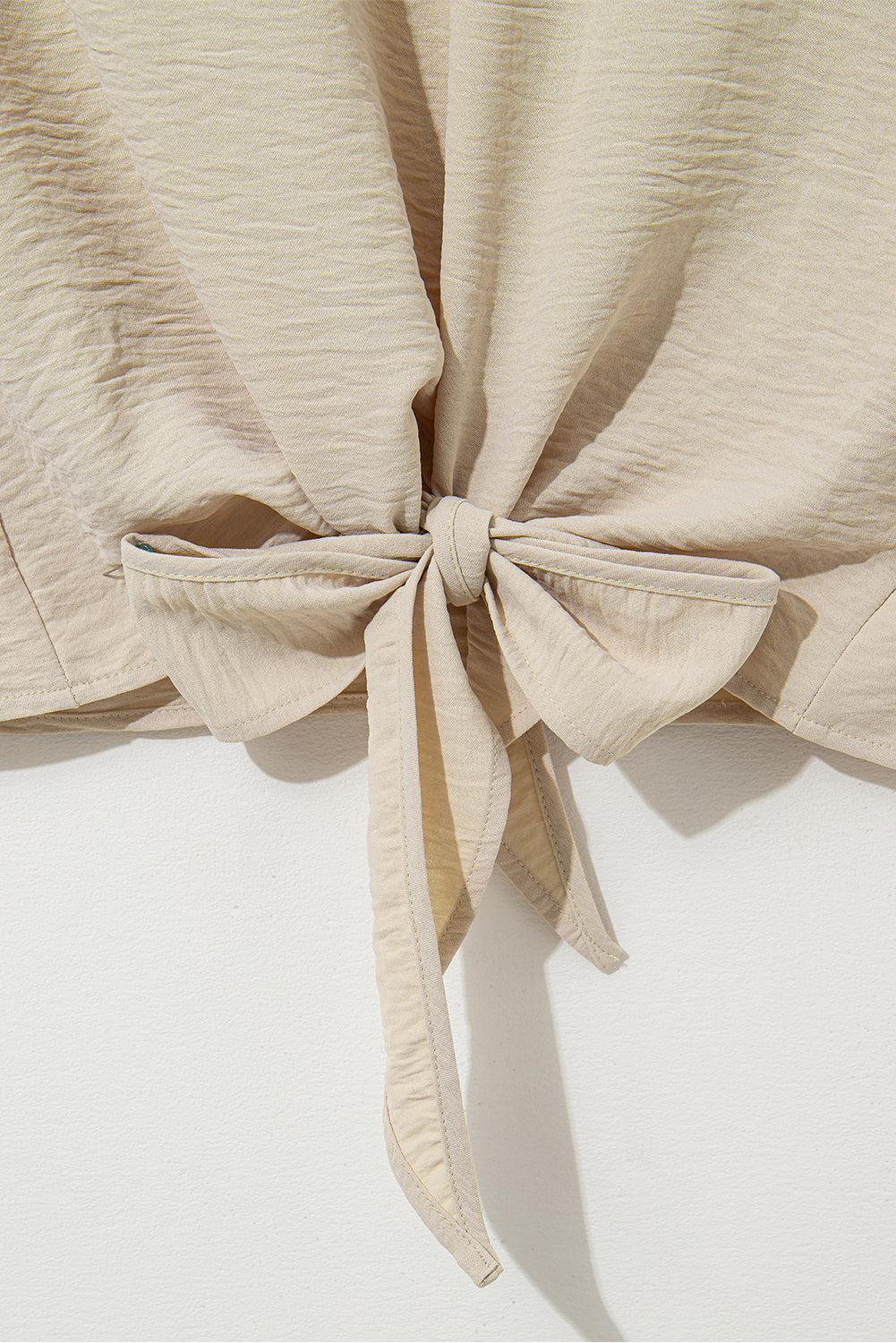 Elevate your everyday elegance with our Sands of Style Tie-Front Blouse — the kind of top that boutique lovers obsess over. Crafted in a luxe neutral tone with a flattering tie-front detail, this top effortlessly blends casual charm with polished perfection. Whether you're brunch-bound, shopping downtown, or styling it under a blazer for work, this piece adapts like a dream.